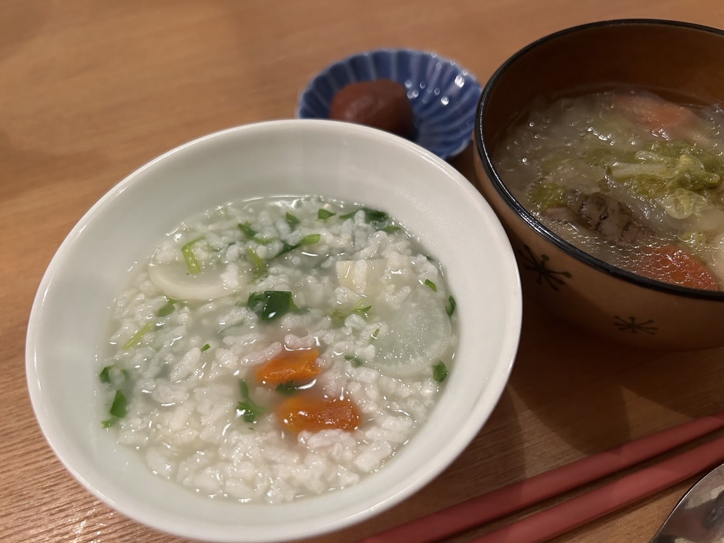 今年は子供たちがハマっている棗とクコの実を入れた薬膳七草粥です。